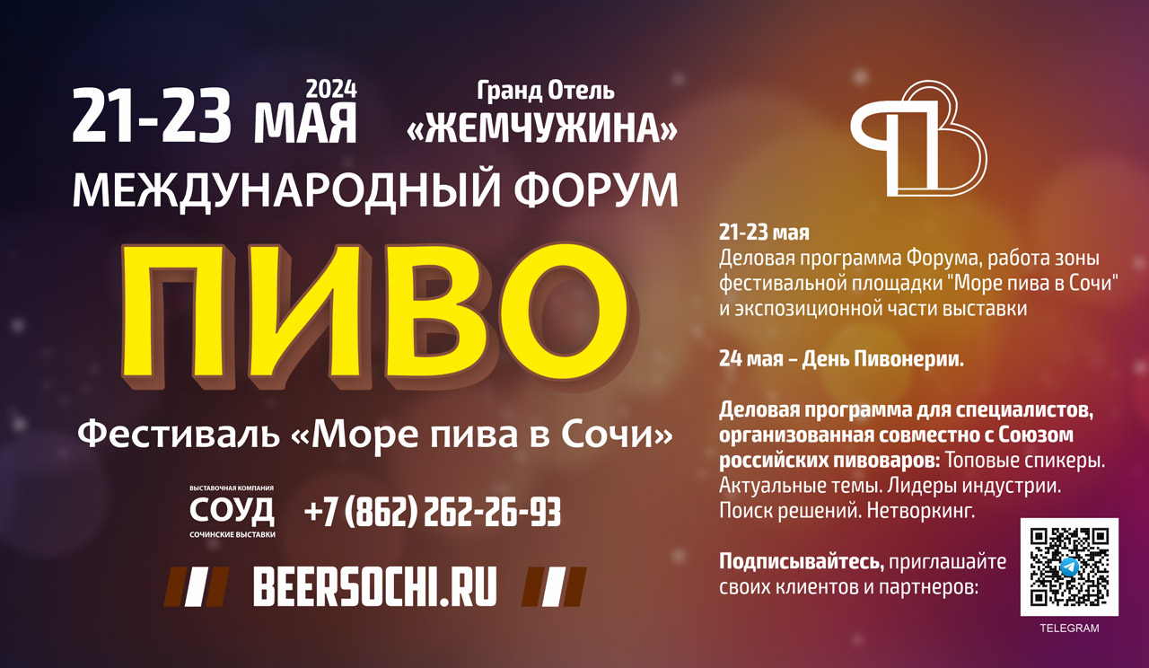 Приглашаем специалистов посетить Форум «ПИВО-2024» с 21 по 23 мая в Сочи!